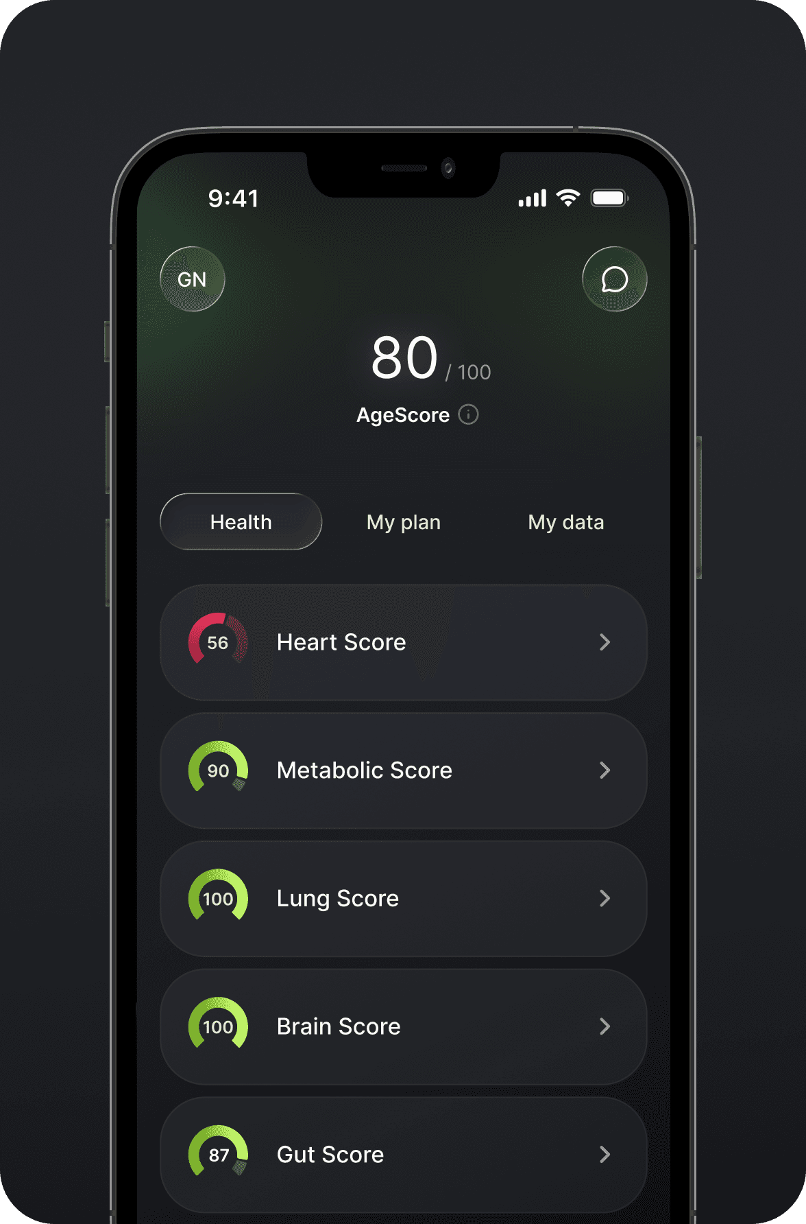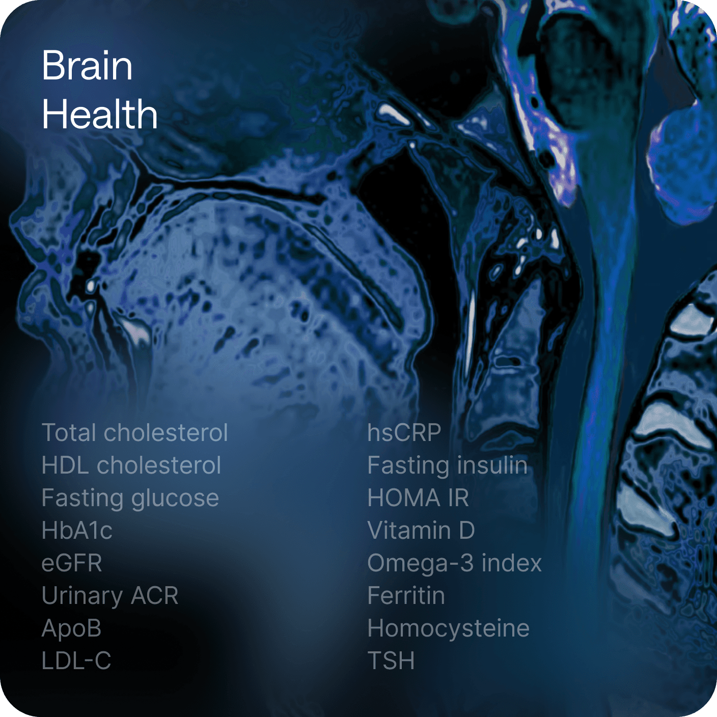 A structured, 360° view of your health — organized into eight clear areas so you always see the full picture.