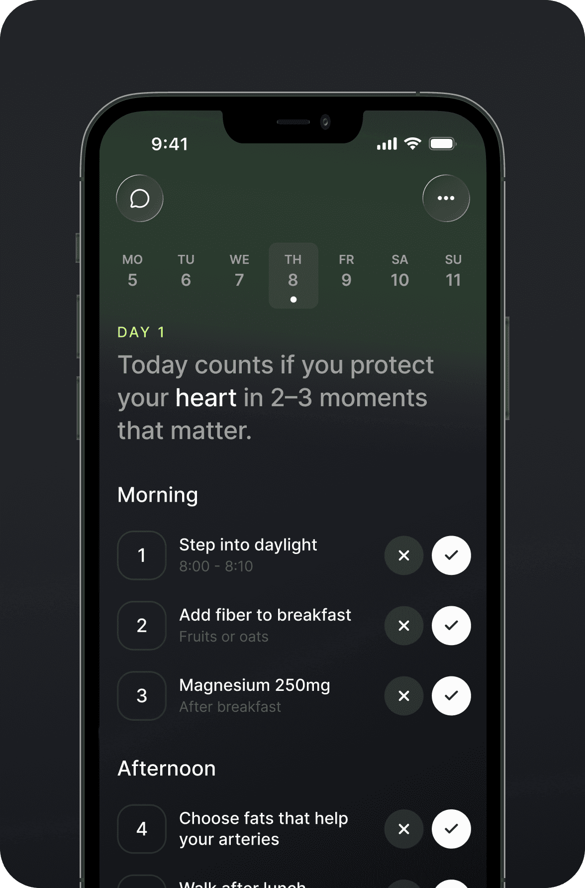 Personalized actions grounded in medical research and best-practice guidelines — clear daily steps you can actually do and track.